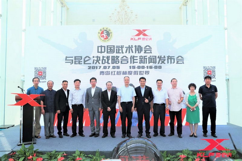 2017年7月5日下午,在青岛红树林度假世界酒店内,中国武术协会与昆仑决一同召开战略合作新闻发布会。中国武术协会主席张秋平、副主席陈国荣、训练竞赛二部主任李永强、昆仑决创始人、董事长姜华、昆仑决执行总裁罗为民、今典集团董事长张宝全等相关领导参会。  中国武术协会主席张秋平致辞