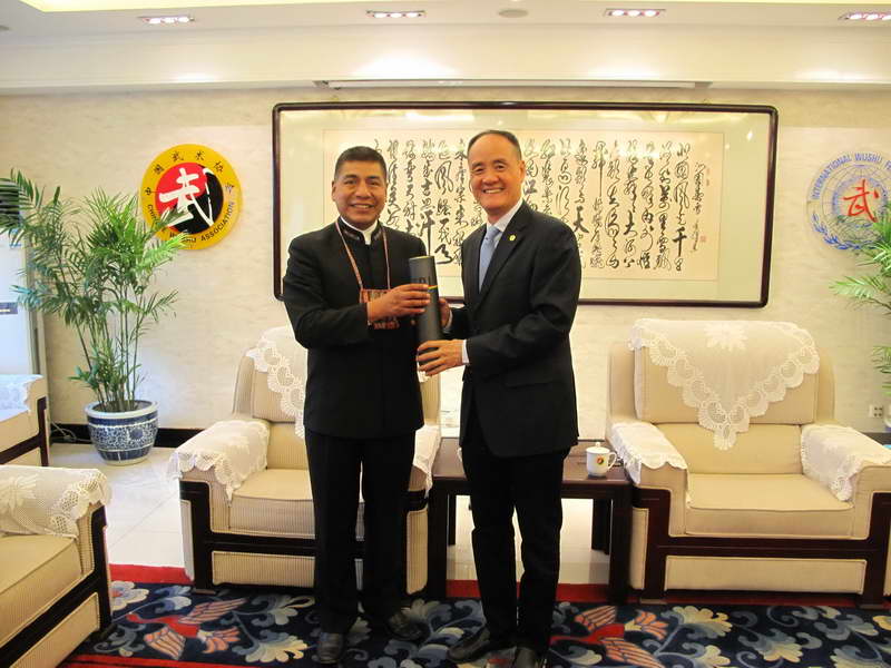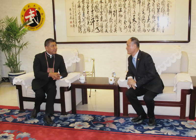 2018年5月29日下午玻利维亚外交部长瓦纳库尼到访中国武术协会。外长酷爱少林武术,这份武术情节外长已是第二次到访,他谈到武术在本国的发展和两国间的武术文化交流,本人与少林武术的渊源,还赠送中国武协张秋平主席一份“少林与太极”杂志,关于外长与少林武术的故事。会谈祥和友好。