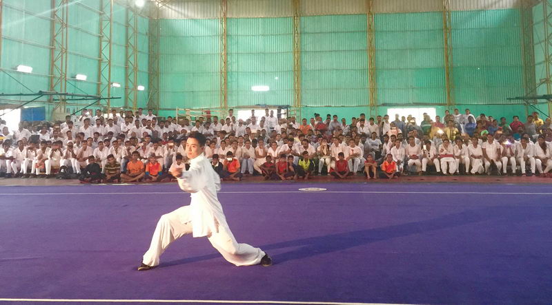 应印度武术协会的邀请,经体育总局批准,中国武协派出以外事部主任曾芳为团长的17人表演团于2016年9月28日至10月4日赴印度进行了访演。来自四川和广东武术队的任刚和何强担任教练,队员也分别来自四川和广东武术队。 行前,队伍在四川进行了为期10天的集训。教练员们为表演精心编排了节目,队员们一丝不苟地反复排练,精益求精。  在印度体育学院表演