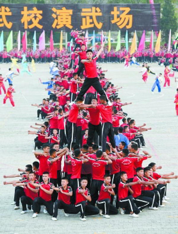 开幕当天,登封市举办了规模浩大的群众武术展演活动,通往少林寺景区沿途的12.1公里路程上,共有478个方阵、8万余名武术队员进行了精彩的武术表演活动。武术表演活动以嵩山为背景,武术队员们在山坡中、沟壑间、丛林里,向中外来宾展示了少林拳法、刀、枪、剑、棍、鞭等18般兵器以及各种少林绝技,充分展示“功夫之都”的精神风貌。  集体合影